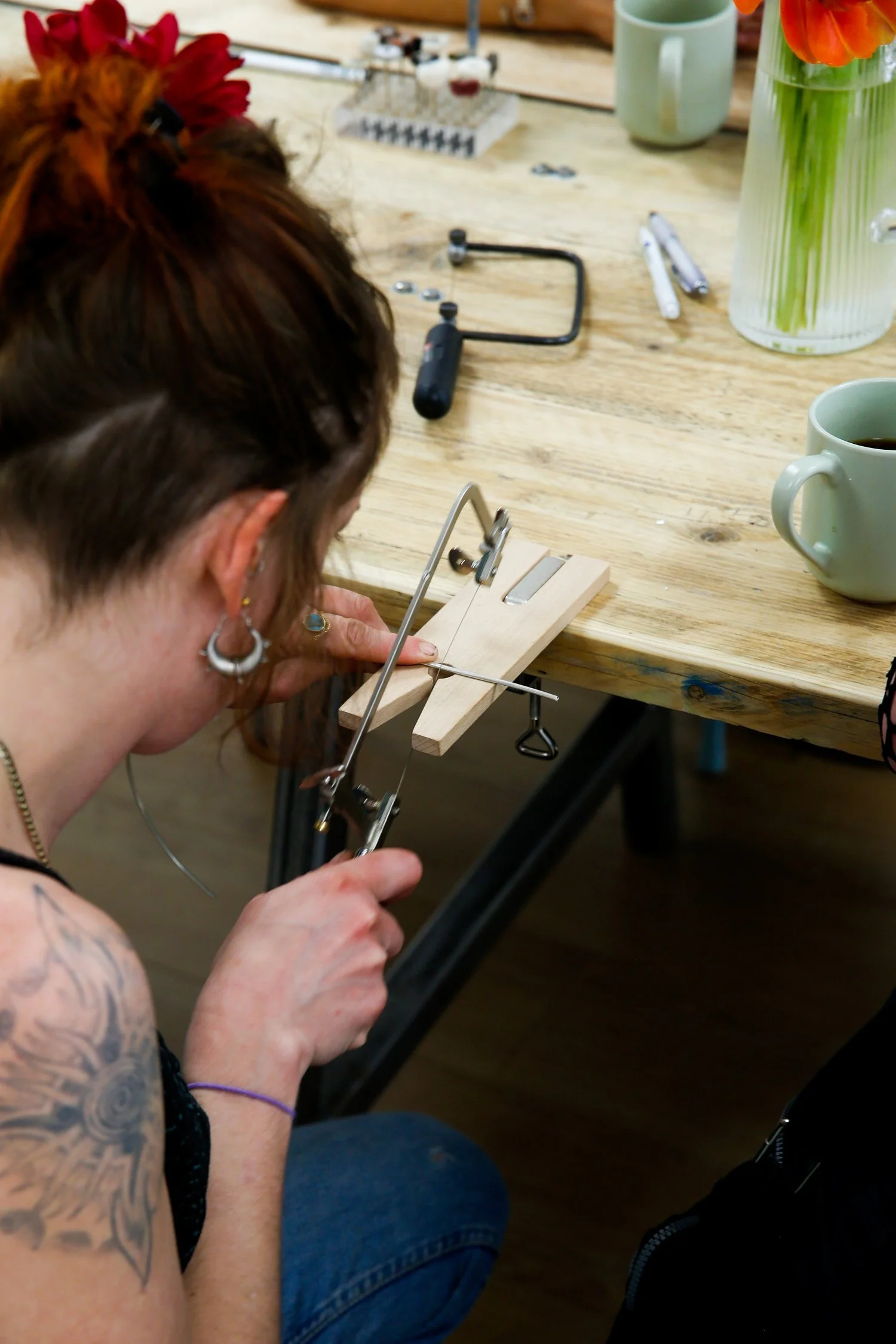 My big silver hoops! I wear one pair of earrings every day and its a pair of hoops I made, you can make a pair as well at on of our workshops!